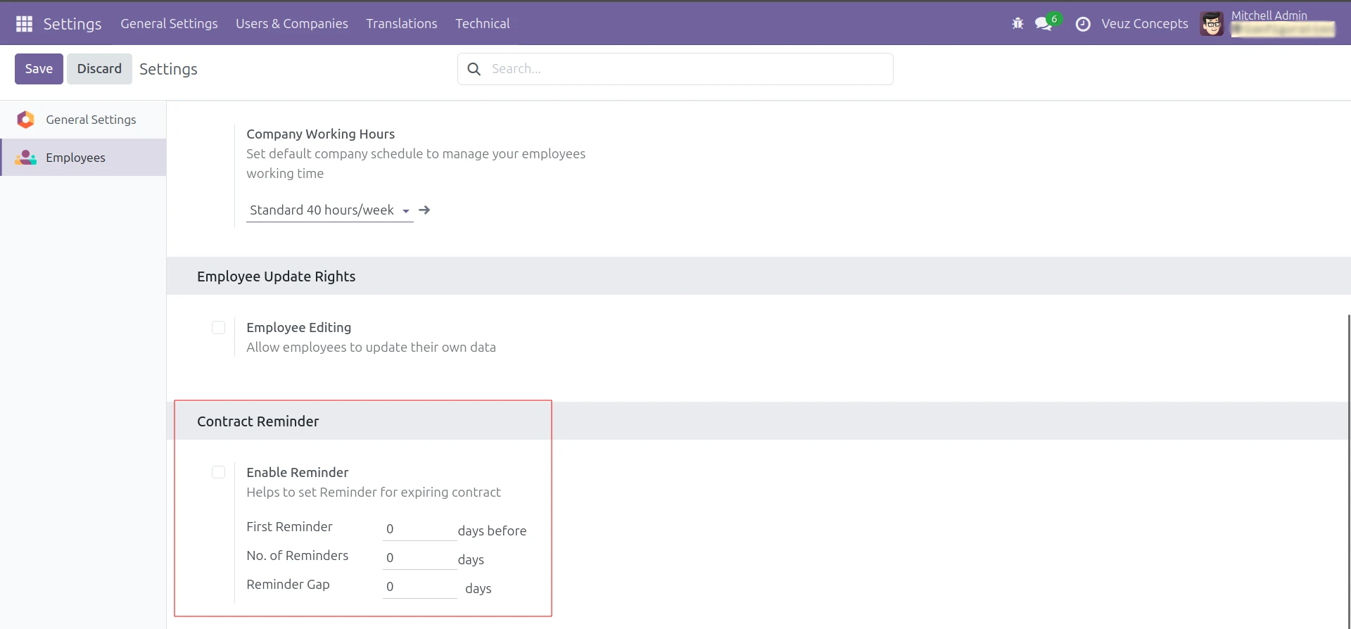 After connecting the two models, the reminder feature becomes something HR can depend on. This way, the values stick with the company’s records, and the system can use them later, for example, when it needs to warn HR that someone’s contract is about to end. It’s a simple setup, but this approach keeps it flexible and works nicely with multi-company environments too.