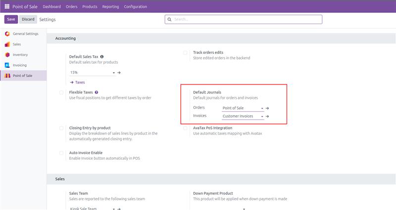 Under Accounting settings in Point of Sales configuration there you need to set the default journal for POS orders and invoices