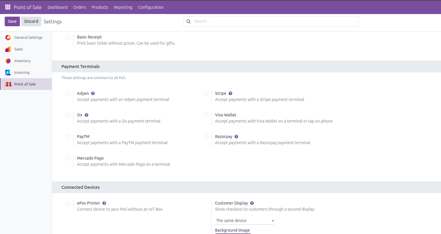 For an efficient payment process for your store, you can always connect your Odoo POS with any of the payment terminals which will allow you to manage payments through debit cards or credit cards of the customers. In the Odoo 18 community, there is a wide collection of payment terminals which you can use directly for connecting. Also, Odoo allows to integrate third party payment terminal integrations through code customizations. These are the available payment terminals in the Odoo 18 community.