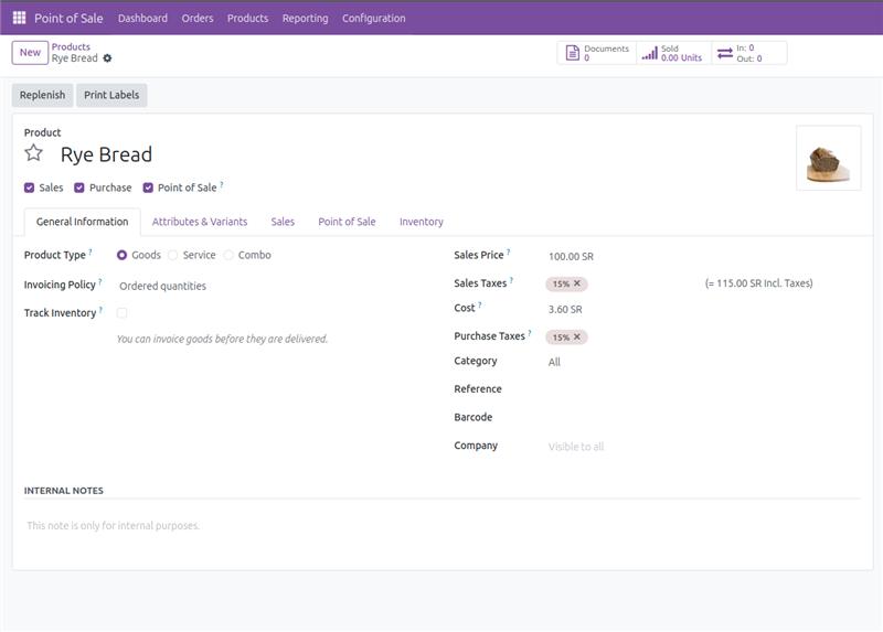 So, let's imagine that you're running a bakery business and let's configure a product together in the Odoo 18.0 Community.